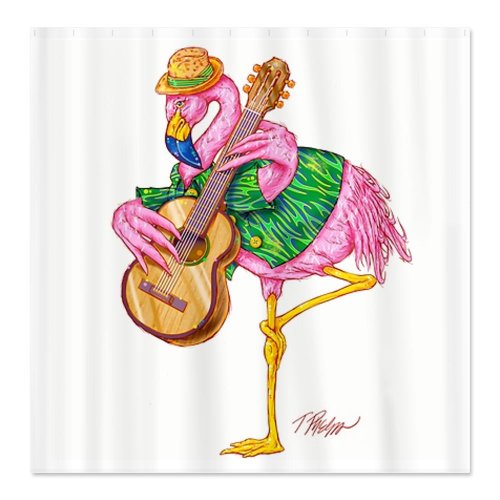 "Buy Flamingo Guitar Shower Curtain by CafePress - White" Overview