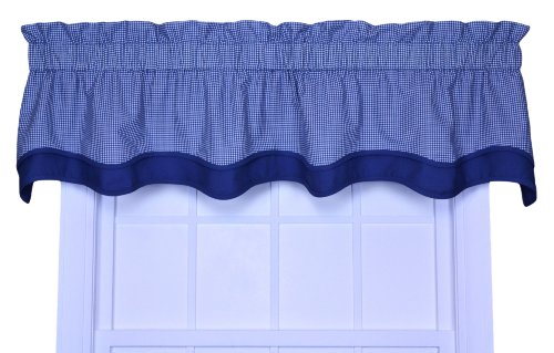 Logan Gingham Check Bradford Valance - Gingham check print is one of the most popular decorating patterns today. The classic 1/8 small gingham check print creates an updated look and feel to any room while soft 100-percent cotton duck fabric creates a softer texture and smoother draping effect and that some times can't be achieved with inferior synthetic fabrics. You are sure to get a valence that's beautiful and functional in a decorating pattern that's timeless and long lasting. The Bradford Valance is a lined two layered, double scalloped valance. The top layer is a gingham check print and is accented by a coordinating solid color and bias binding bottom layer. It is made with a 3-inch rod pocket and decorative 2-inch header. Measuring 70-inch wide, it will accommodate approximately 30 - 60-inch of window width. Length is measured overall 17-inch from header top (ruffle above the rod pocket) to bottom of panel. Bradford valances can be combined with coordinating Victoria Park Toile Tailored Tier Curtains and Tailored Pair Drape Panels with Tiebacks that are also available thru Amazon. Also available are matching Tailored Tier Curtains, Tailored Pair Drape Panels with Tiebacks, 3 Piece Lined Swag Curtain Set, Chair Pads, Throw Pillows, Shower Curtain, Bed Skirts/Dust Ruffles, Bed Comforters and Shams. Made in the USA, Dry clean onlyYou will not be disappointed with