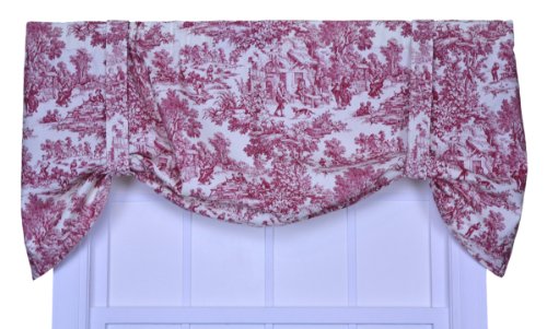 "Buy Victoria Park Toile Tie-Up Valence Window Curtain, Red" Overview