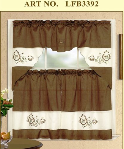 "Buy 3 Piece Beige Coffee Embroidered Kitchen/cafe Curtain Tier and Swag Set" Overview
