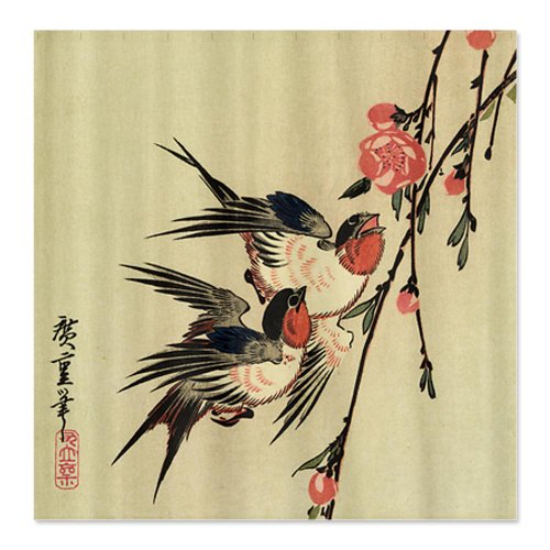 "Buy Hiroshige Swallows and Peach Blossoms Shower Curta Shower Curtain by CafePress - White" Overview